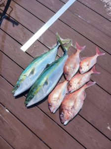 トップページ ブログ 呉一住宅 水産部情報🎣 呉一住宅 水産部情報🎣 呉一丸 元気に出航して参りました🚢 久しぶりの出航だったので、忘れていました・・・ まだ4月ですが、海の日差し🌞の強さにビックリ💦 いいサイズの鯛とハマチがあがったので よかったです(*^▽^*)