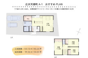 | その他の情報 | 広弁天橋町に2区画新登場 A-1 133.12㎡/40.26坪 ※測量後、面積が多少増減する場合がございます。予めご了承ください。 プランが決まっている方はもちろん、決まっていない方も十分なサポートで住まいづくりが可能です。 【注文住宅用地・建築条件付き】 |