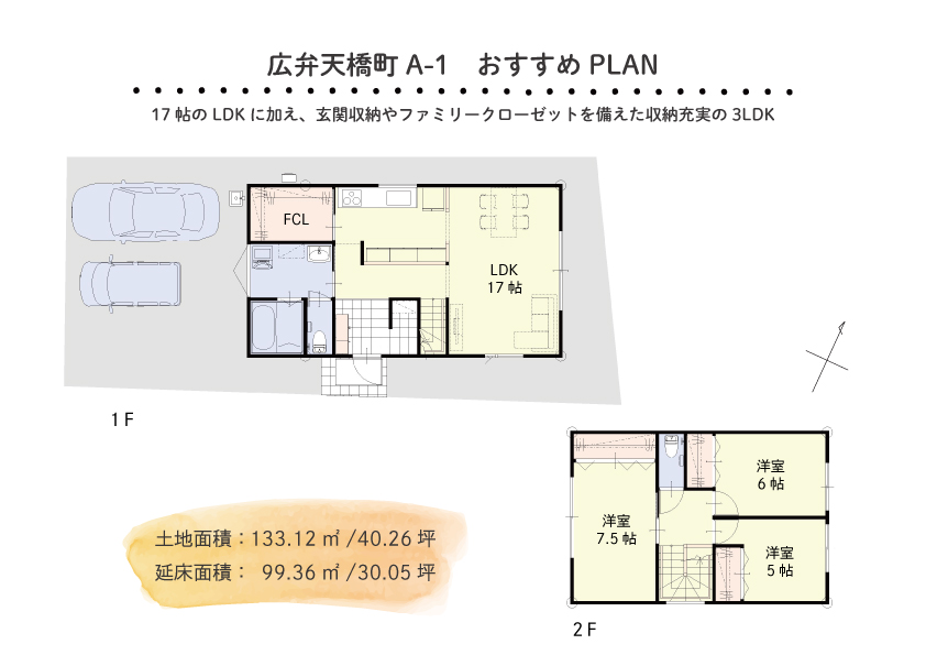 | その他の情報 | 広弁天橋町に2区画新登場 A-1 133.12㎡/40.26坪 ※測量後、面積が多少増減する場合がございます。予めご了承ください。 プランが決まっている方はもちろん、決まっていない方も十分なサポートで住まいづくりが可能です。 【注文住宅用地・建築条件付き】 |