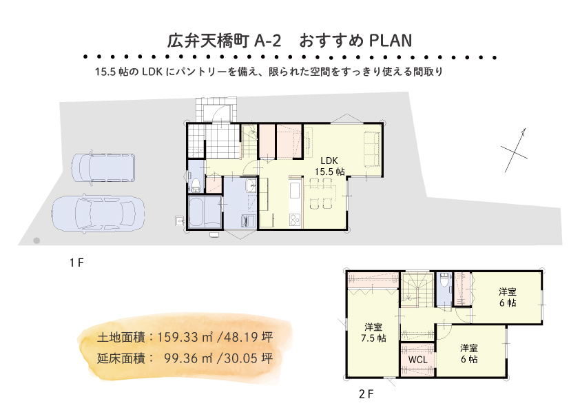 | 土地面積 | 133.12㎡・159.33m² / 40.26坪・48.19坪 |