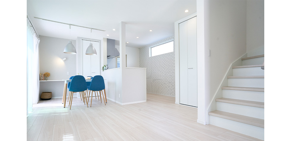白を基調にしたシンプルで清潔感のあるお家。